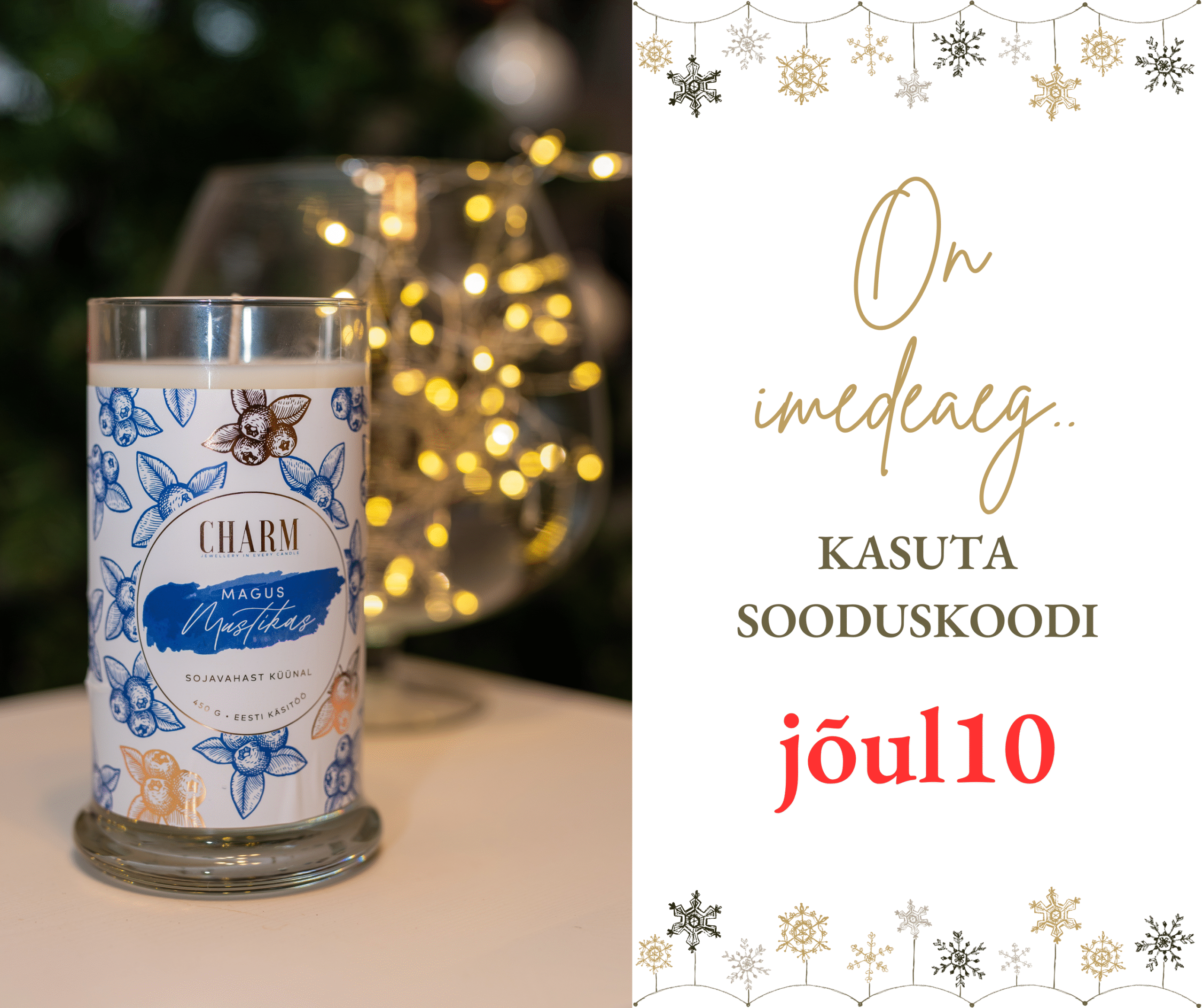 Charm on Eestis käsitööna valminud sojavahast küünal, mis põleb kuni 100 tundi ning mille seest sulab välja kvaliteetne 925 Sterling hõbeehe!